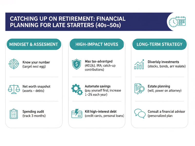 Starting retirement planning late is not ideal, but it’s infinitely better than not starting at all. The combination of maximized contributions, aggressive savings rates during peak earning years, strategic expense reduction, career optimization, and realistic retirement expectations can still create comfortable retirement options. The critical factor is taking immediate, decisive action rather than waiting for circumstances to improve. Your future self will be grateful for the discipline and sacrifices you make today to build retirement security despite the late start.